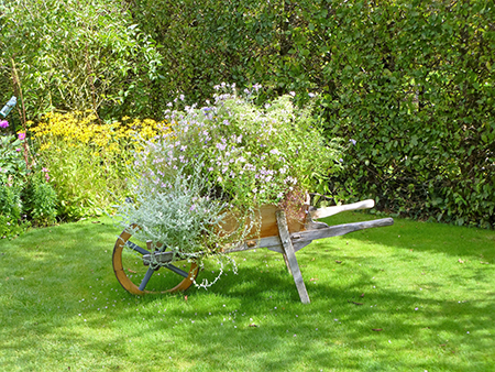 Et pourquoi pas une brouette végétalisée esprit fleurs des champs ?